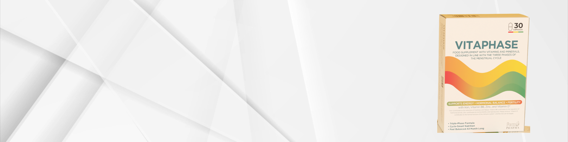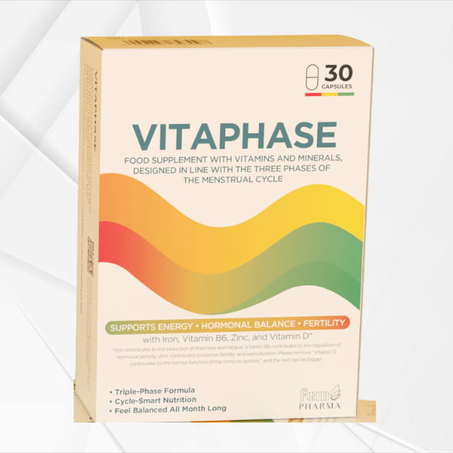 VITAPHASE is a food supplement containing vitamins and minerals, which components may help alleviating the bothersome symptoms associated with the menstrual cycle.